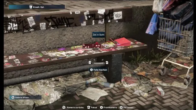 Как уже говорилось, за последней уликой нужно отправиться в центр запретной зоны. Хотя бы для того, чтобы уничтожить патрулирующих неподалеку охранников. К сожалению, ваша цель - небольшой коричневый планшет, едва заметный на скамейке в парке. Нужно прицелиться в него с близкого расстояния и как можно ближе к центру, чтобы фотография была признана уликой.