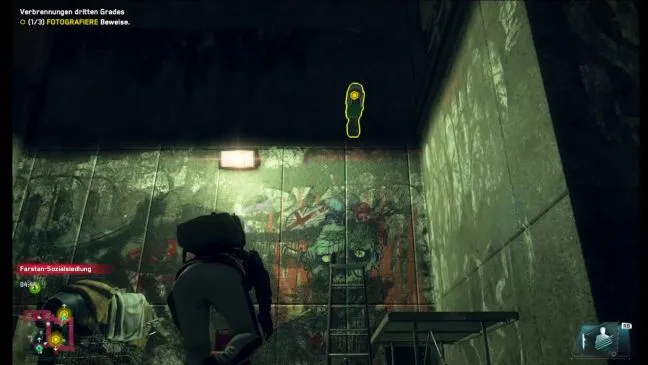 Если подойти к этой зоне с юго-востока, то можно наткнуться на большую лестницу. Поднимитесь по ней и держитесь левее, пока не попадете в ярко освещенную нишу с лестницей. Прямо над ней висит камера наблюдения, которую необходимо сфотографировать.